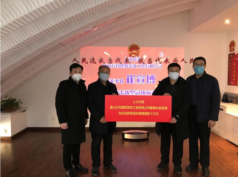 作為市、區(qū)兩級(jí)人大代表的博海方舟集團(tuán)董事局主席崔宣博春節(jié)期間率先啟動(dòng)抗擊新冠肺炎疫情防護(hù)愛(ài)心捐款行動(dòng), 代表方舟建設(shè)集團(tuán)有限公司捐款 10 萬(wàn)元(其中: 5 萬(wàn)捐給武漢用于抗疫; 5 萬(wàn)捐給路北區(qū)用于防疫),用自己的實(shí)際行動(dòng)為武漢和路北區(qū)抗疫防治工作貢獻(xiàn)著一名人大代表的一份力量,彰顯出一位民營(yíng)企業(yè)家的家國(guó)情懷和責(zé)任擔(dān)當(dāng)。